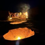 Nach dem Abendessen verabschieden wir den Tag bei einem farbenprächtigen Sonnenuntergang. Am Lagerfeuer genießen wir den mit Millionen von Sternen übersäten Nachthimmel und werden als Einstimmung auf die Zeit in der Wüste ein Feuer Ritual und eine Feuer Meditation durchführen. (F, M, A)