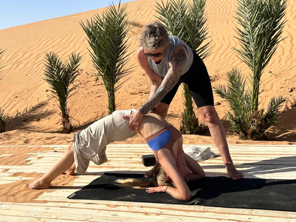 Lebt in Eckernförde und hat ein Studio in Kiel für Yoga, Breathwork, Coaching, Healings. Sie unterrichtet seit mehr als 20 Jahren, bildet seit einigen Jahren auch Yogateacher aus und gibt zahlreiche Events und Retreats seit vielen Jahren. Vor 3 Jahren war Claudia das erste Mal in der Wüste bei uns und erlag dem Zauber dieser unbeschreiblichen Atmosphäre im Camp und mit der Familie. Claudia: “Es ist der phantastischste Ort für Rückzug und gleichzeitig radikaler Wandlung, weil alles fällt, was nicht mehr dient, damit das Neue sich zeigen kann.“ Ihre dynamische und einfühlsame Art öffnet Räume bei ihren Teilnehmenden, die wahre Transformation bewirken. Ihre Verbindungen aus gut ausgerichtetem Yoga, modernem, fröhlichem Inside Flow (Yoga on Beat), Breathwork und Somatic Release sowie sanftem Einkehren und tiefgreifenden Coachingelementen bieten eine unvergleichliche Kreativität. Claudia wird auch in dir mitreißend und humorvoll das Schlummernde wecken, um deine wahre Größe zu entfalten.