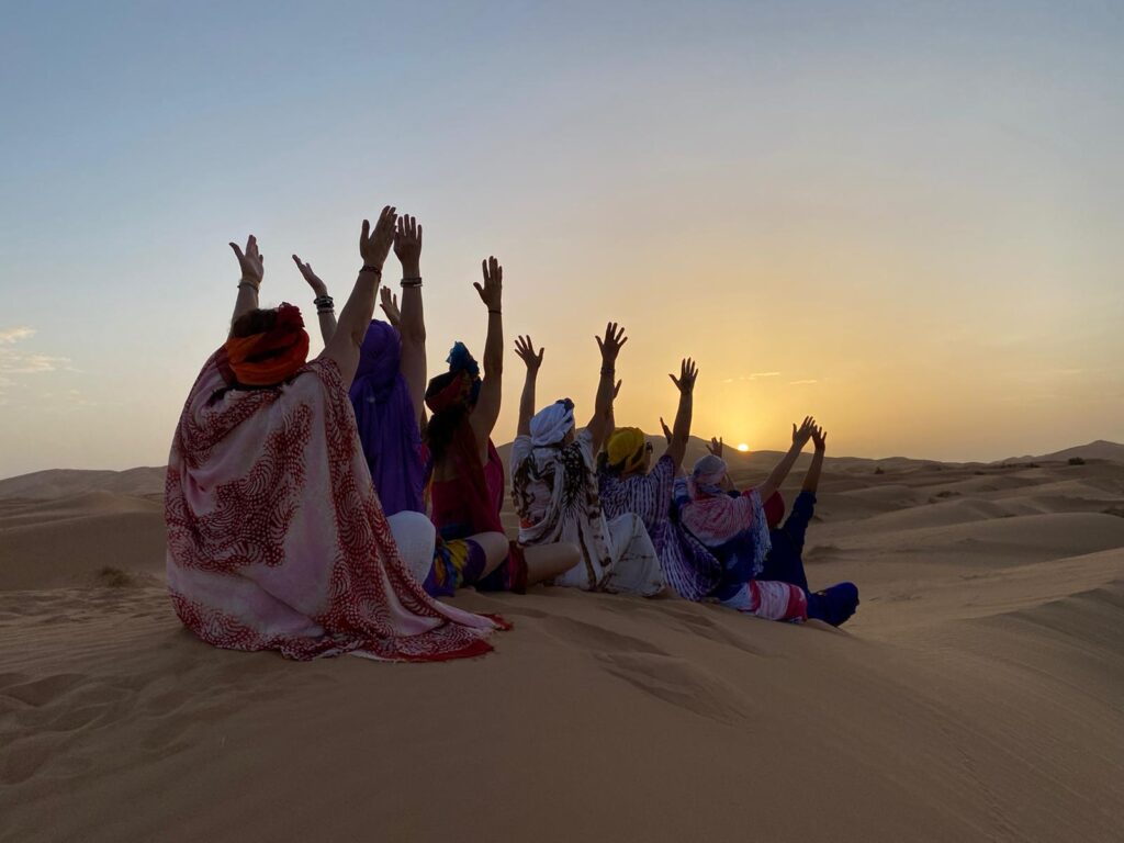 Nun beginnt die individuelle Zeit. Wonach ist dir? Die Möglichkeiten sind groß. Höre den Geschichten von Barak über Marokko und der Wüste zu. Tausche dich in der Gemeinschaft aus, lese an einem schattigen Ort, lausche der Stille in Meditation oder genieße einen Wüstenspaziergang bis zu „Baraks Düne“.