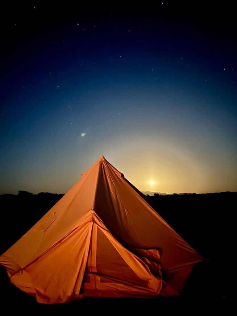 Am Nachmittag kommen wir an unserem ersten Schlafplatz an. Während unser Abendessen vorbereit wird, haben wir nun Zeit für eine Session. Anschließend gibt es ein leckeres liebevoll gekochtes Abendessen und wir verabschieden den Tag bei einem farbenprächtigen Sonnenuntergang. Am Lagerfeuer genießen wir den mit Millionen von Sternen übersäten Nachthimmel und wir kommen nun mit der Magie der Wüste in ihrer ursprünglichsten Form in Verbindung.
