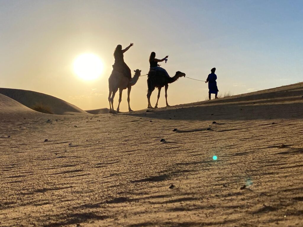 Doch egal mit welchem Flug du landest, unser Fahrer wartet auf dich und die anderen Teilnehmer*innen (bitte informiere uns lediglich mit welchem Inlandsflug du ankommst) und es geht tief in die Wüstenregion hinein bis zur Oase Merzouga (ca. 1,5 – 2 h Fahrt), wo die erste Übernachtung in einer traditionellen Kasbah am Rande der Wüste stattfindet. (A)